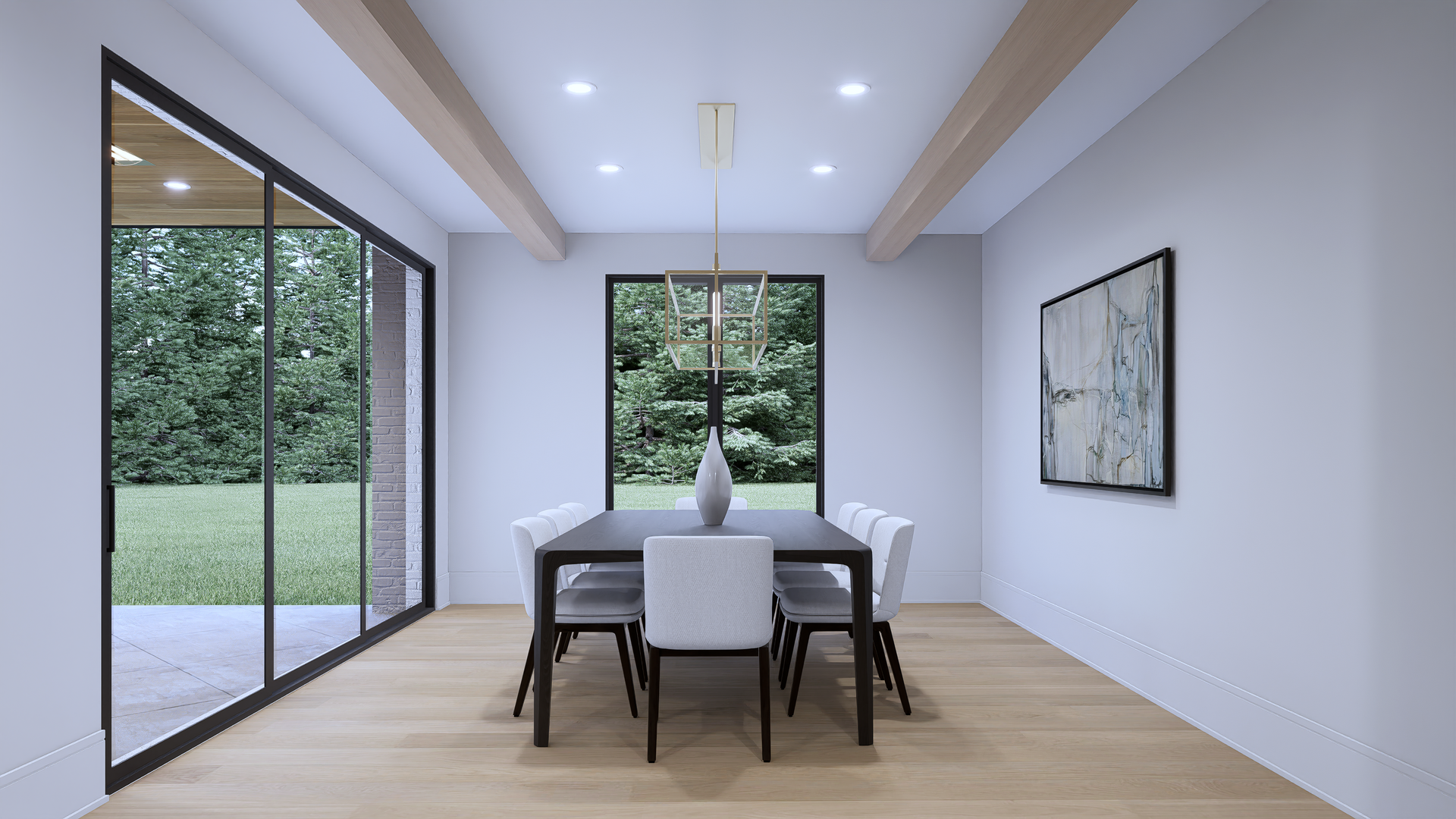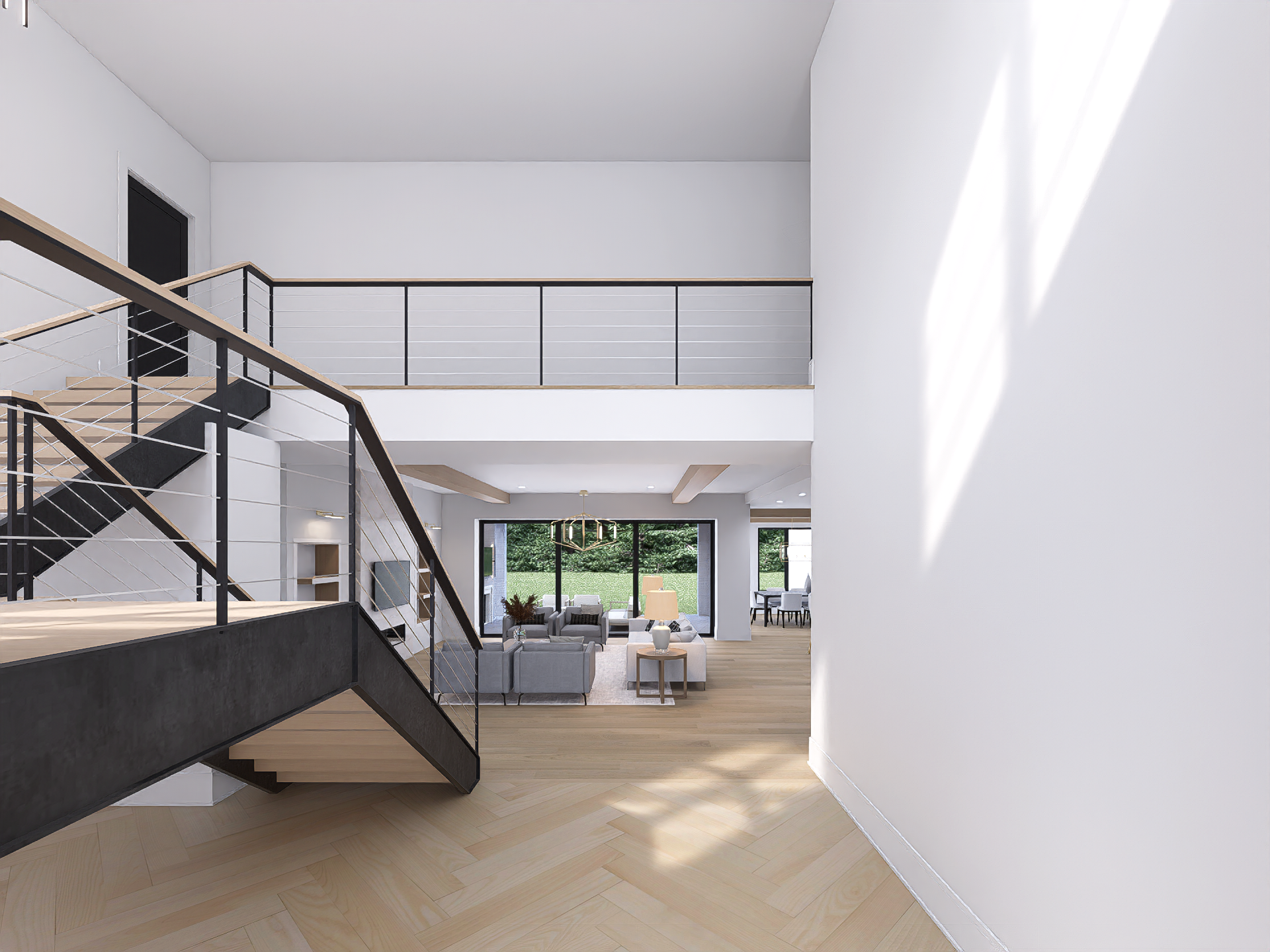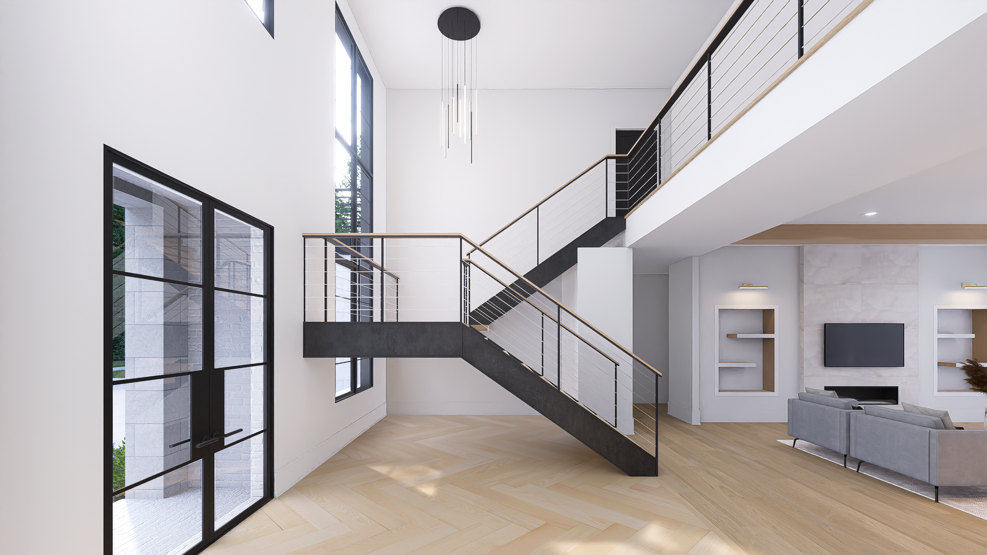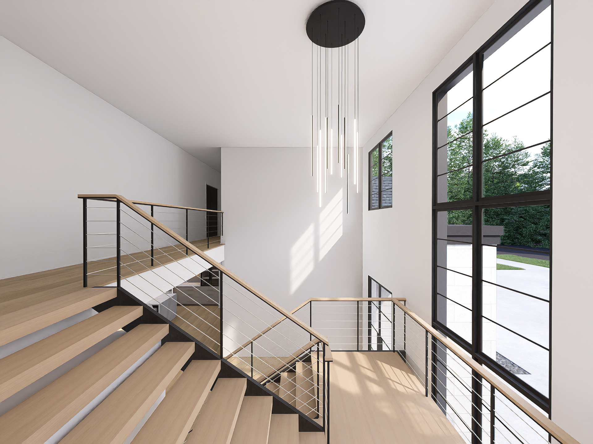 Imagine walking up to your dream home, a stunning 2-story modern style house. As you step through the front door, you're greeted by the grandeur of the foyer, with an elegant floating staircase leading to the upper level.